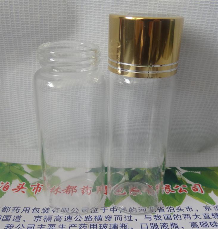 100ml廣口藥用玻璃瓶直徑為50ml,高度為88mm,瓶口外徑為38mm,顏色有棕色和透明,瓶口較大,主要是用于盛裝各種膠囊、片劑、粉劑,顆粒等,材質為鈉鈣玻璃, 其標準是執(zhí)行國家食品藥品監(jiān)督局的YBB00272002標準。