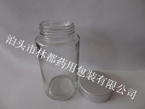 這款玻璃瓶是我公司為北京同仁堂蜂業(yè)打造的;采用為鈉鈣玻璃;瓶口較大,可盛裝固體產(chǎn)品,如膠囊、藥片、粉末等;可配電化鋁蓋;這款玻璃瓶直徑為65mm 高度為123mm 瓶口外徑為49mm 重量為254.7g